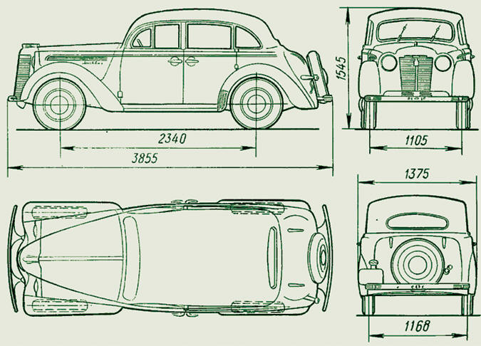 всего лишь 1375-милиметровую ширину. Высота же первого «Москвича»