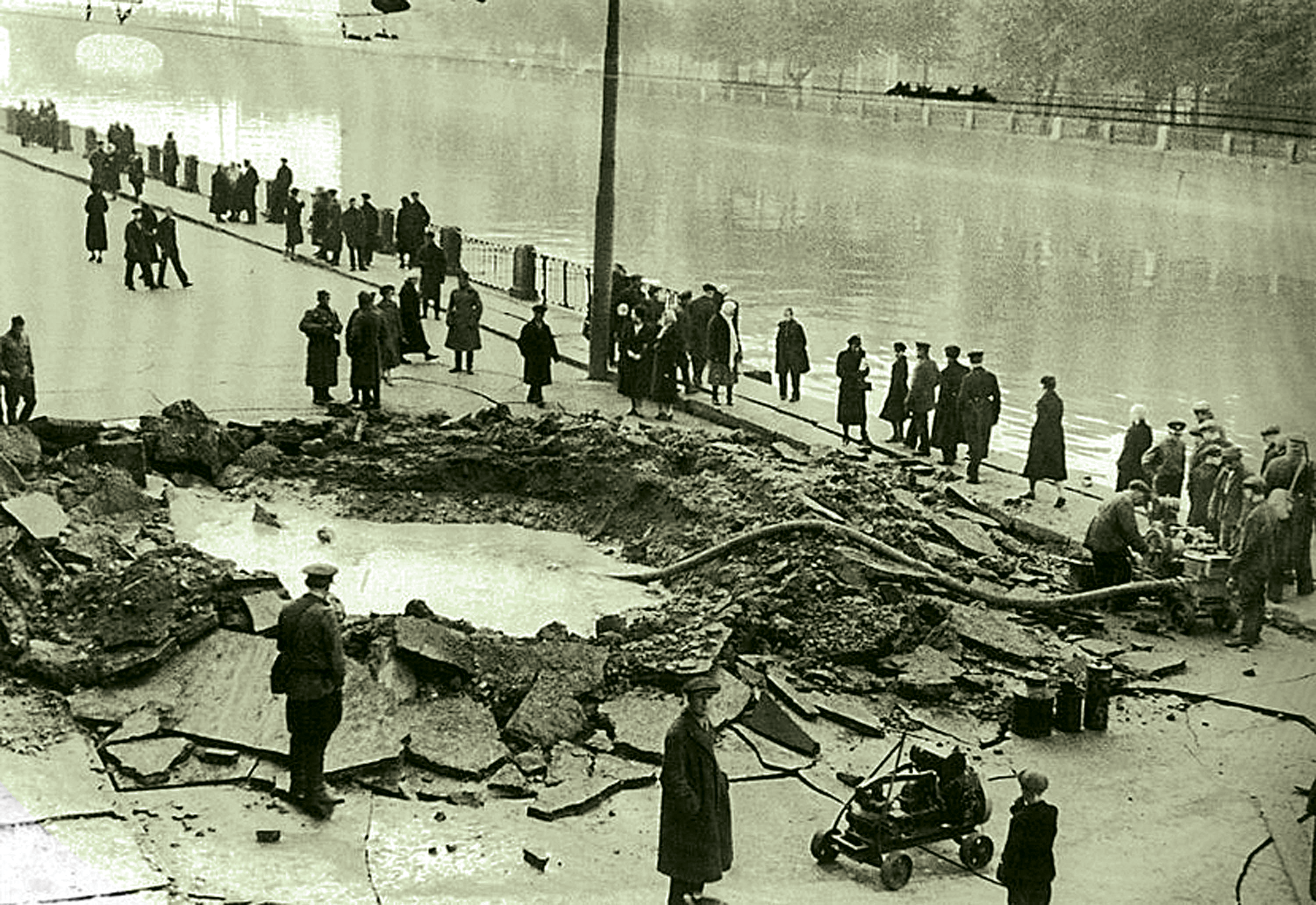 Воронка от авиабомбы на Фонтанке, 9 сентября 1941.